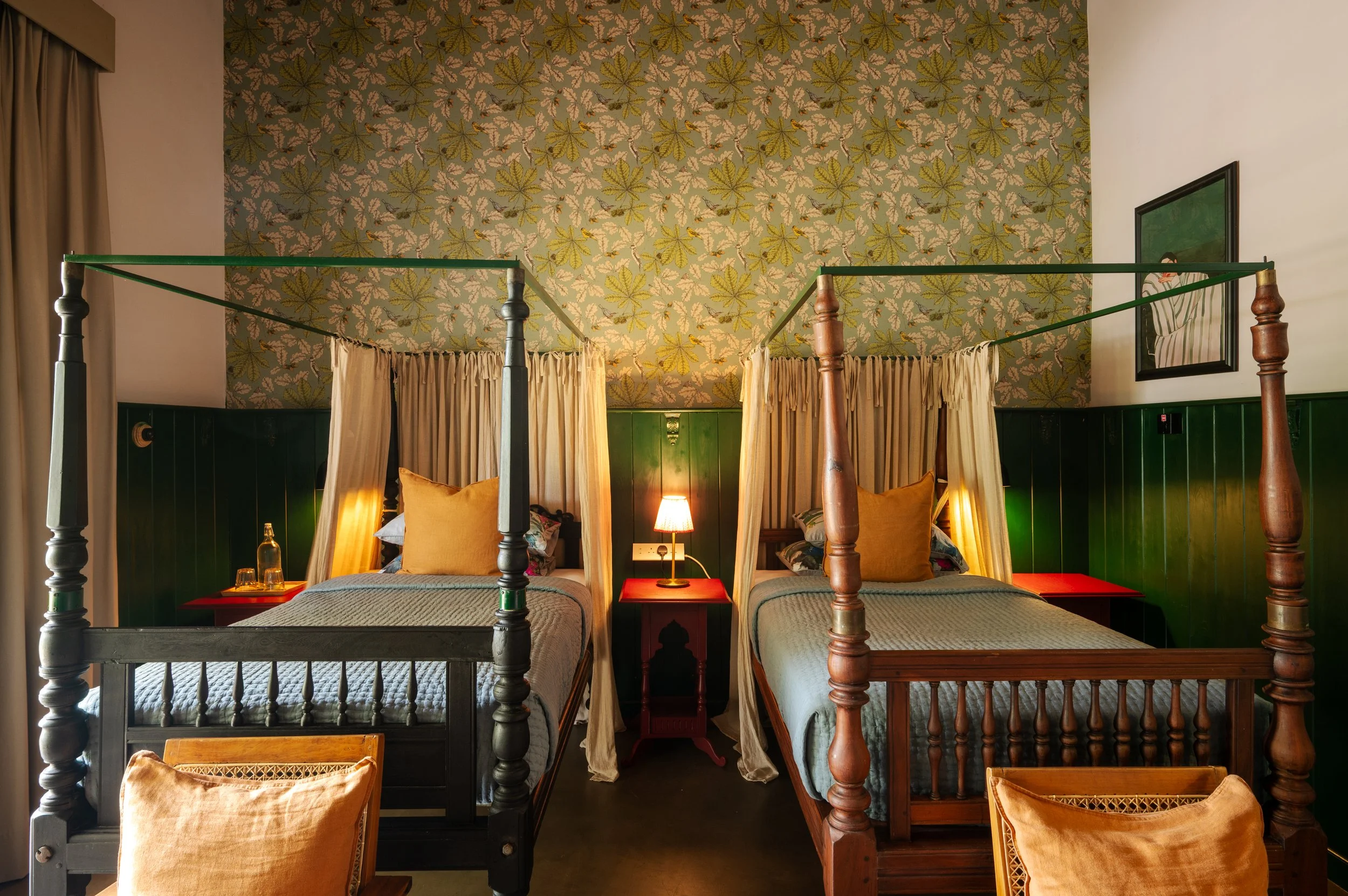 375 square feet of indoor space and 180 square feet of private terrace with an outdoor seating, Lake View Suit has its own entrance overlooks the garden, pool, the lake and mountains beyond. Lake View Suite features 100-year-old two separate four poster beds, which can be made into one double bed, 50-year-old vintage divan that can accommodate a child up to 12 years old. The suite has space to accommodate a fold up bed when needed.